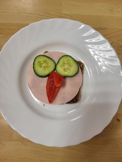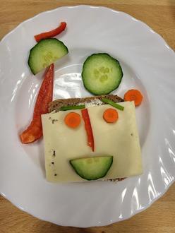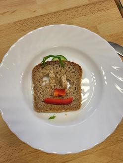 Neben dem Brot standen auch Obst und Gemüse auf dem Speiseplan. Mit viel Begeisterung schnitten die Schülerinnen und Schüler die Zutaten selbst, legten daraus bunte Gesichter und sorgten so für fröhliche Frühstücksteller.