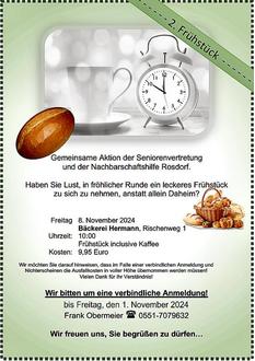 Aus unserer Sicht war das gemeinsam mit der Nachbarschaftshilfe im September im Café Hermann angebotene Frühstück sehr gelungen und wurde sehr gut angenommen. Daher möchten wir am 8. November wieder ein Frühstück anbieten unter dem Motto