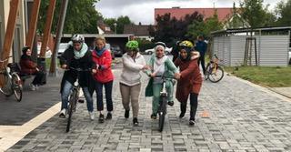 Die Resonanz auf den Kurs war wunderbar: 11 Frauen aus unterschiedlichen Altersgruppen und mit verschiedenem Erfahrungsstand meldeten sich an, um ihre Fahrradkenntnisse zu erweitern. Von der ersten wackeligen Fahrt bis zu sicheren Tour über das Anne-Frank-Gelände war die rasante Entwicklung bei jeder einzelnen Teilnehmerin sichtbar. Die Stimmung miteinander war herzlich und motivierend. Die Frauen unterstützten sich gegenseitig mit anfänglichem Stützen, Beifall und gutem Austausch, was das Gemeinschaftsgefühl und persönliche Empowerment stärkte.