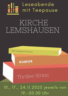 Ab November gibt es in Lemshausen wieder Leseabende. Sie sind dazu herzlich eingeladen!