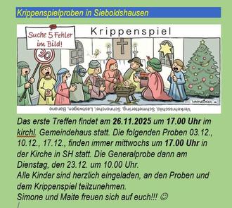 Alle Kinder sind herzlich eingeladen, beim Krippenspiel mitzumachen!!