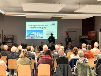 Am Mittwoch, 30. Oktober konnte die Bürgerstiftung im Foyer des Rosdorfer Familienzentrums 60 Besucher/innen begrüßen, um einem Vortrag zu einem wichtigen Themenbereich der persönlichen Lebensgestaltung zu folgen: Die beiden Rechtsanwälte Dr. Dietmar Buschhaus und Jan Ockershausen von der Rosdorfer Rechtsanwaltskanzlei Kleinjohann haben in einem praxisnahen Referat die Grundzüge der General- und Vorsorgevollmacht sowie der Patientenverfügung aufgezeigt.