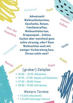 | 15:30 – 18:00 Uhr | Kirche Kunterbunt (Am Plan 14a) |