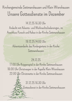 | 16:30 Uhr | Andacht Weihnachtsliedersingen mit Knabbereien (Pastorin A. Markstädter) |