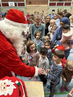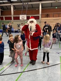 Der Weihnachtsmann kam in der Halle am Siedlungsweg vorbei und überraschte die Kinder mit einem Sack voller Geschenke.