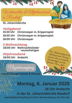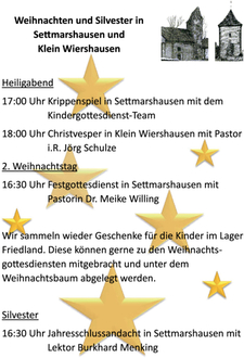 Chor: freitags, 14-tägig, 20 Uhr (20.12., 17.01.)