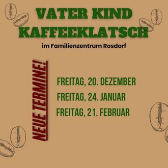 Der Vater Kind Kaffeeklatsch findet einmal im Monat in der Zeit von 15.00 bis 17.00 Uhr im Multifunktionsraum 1 (Erdgeschoß) im Familienzentrum Rosdorf statt.