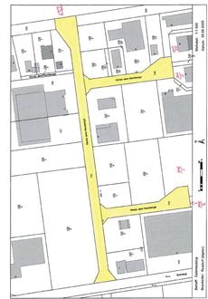 Beginnend am Flurstück 141 der Flur 22 verläuft sich das Flurstück nach 270 Meter in den zweiten Teil der Straße in das Flurstück 148 der Flur 22 welches sich ebenfalls in südlicher Richtung auf einer Gesamtlänge von ca. 125 Meter erstreckt und in den Flurstücken 149/1, 149/3 und 149/11 nördlich endet.