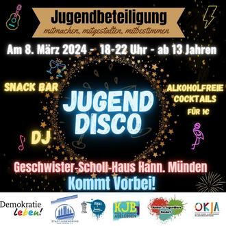 Komm mit uns nach Hann Münden zur Jugenddisco und plane mit an einem großen Event. Diese Veranstaltung wird unterstützt von „Demokratie leben“. Wir fahren mit Euch zusammen nach Hann Münden und auch wieder zurück.