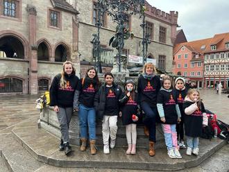 Mädchengruppe aus Rosdorf tanzt auf dem Gänseliesel in Göttingen