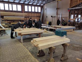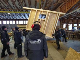 Im Rahmen des Handwerkwettbewerbs "Mach was!" bauen Schüler*innen der Profilkurse Technik aus Jahrgang 9 und 10 ein Hühnerhaus für unseren Schuhof. Das Ganze geschieht in Kooperation mit Zimmerei Lotze-Franke GmbH, Hemeln und Dachdeckerei Frank Grewe, Groß Schneen. Am 16. und 17.01. ging es los. In Hemeln wurden die einzelnen Wände in Fertigbauweise von unseren Schüler*innen unter Anleitung eines Meisters und drei Auszubildenden gebaut. Sobald es das Wetter zulässt und die vorbereitenden Arbeiten auf dem Schulhof abgeschlossen sind, wird das CFG-Hühnerhaus aufgebaut!