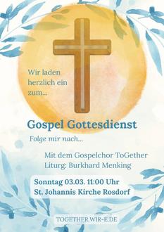 | 11.00 Uhr | Gottesdienst mit Gospelchor, Lektor Menking |