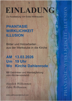 13.03.2026 um 19:00 Uhr in Dahlenrode in der Kirche, Ausstellung Bilder & Holzarbeiten von Edda Wellhausen