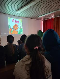 Am Montag dem 17. März 2025 sind die 1a und 1b Mit dem Bus nach Göttingen in die Stadtbibliothek gefahren. Dort haben wir zwei Bücher vorgelesen bekommen, Yuna und die Sache mit dem Mögen und Ted, der bärenstarke Drache. Dann haben wir einen Hund gebastelt und anschließend sind wir wieder in die Schule gefahren.