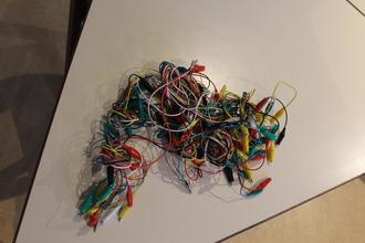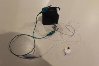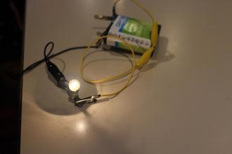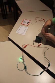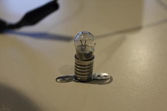 Im nachfolgenden Experiment nehme man: Kabel mit Krokodilklemmen, eine Batterie und ein Lämpchen und baue dieses so zusammen, dass die Lampe leuchtet.