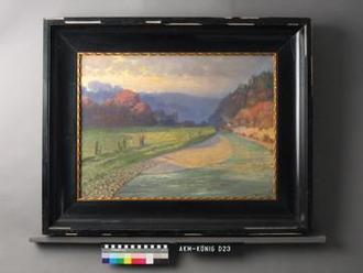 Die Bilder dieser Ausstellung lassen uns den Winter vergessen: Sommerabende mit spektakulären Sonnenuntergängen, lichtdurchflutete, weite Landschaften, Regenbögen, die das Ende des schlechten Wetters ankündigen und Aufsehen erregende Wolkenformationen sind die Motive der hier gezeigten Werke von Albert König. Dennoch kann man nicht behaupten, König sei ein „Schönwetter-Maler“ gewesen – im Gegenteil: Alle Wetterlagen haben ihn als Maler interessiert. Das wechselnde Licht, die je nach Wetterbedingungen veränderten Farben der vertrauten Landschaft und die unterschiedlichsten Auswirkungen von Regen oder Hitze auf seine Motive hat er genau beobachtet und versucht, in Malerei zu verwandeln.