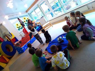 Verschiedene spannende Projekte haben begonnen: In einer Gruppe sind drei kleine Schweinchen eingezogen, und eine Schildkröte wünscht sich zu ihrem Geburtstag unbedingt einen großen, saftigen Salatkopf. In einer anderen Gruppe wird das hoffentlich baldige Erwachen des Frühlings mit dem Thema „Schneeglöckchen“ eingeläutet. Passend dazu wird gesungen, gebastelt, gespielt und gereimt.