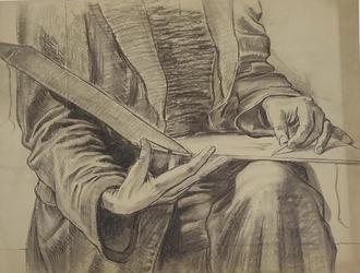 Das Bild zeigt: Albert König, 1942, Zeichnende Hände, Kohle