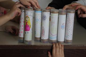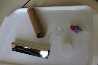 Aus diesen Komponenten haben die Kinder ein Kaleidoskop gebastelt.
