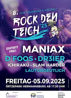 „Rock den Teich“ feiert am Freitag, den 5. September 2025 bereits seine achte Runde im Örtzepark in Hermannsburg!