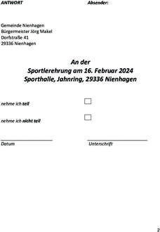 Die Gemeinde Nienhagen möchte ihre besonders erfolgreichen Sportlerinnen und Sportler aus dem Jahr 2023 ehren.
