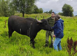Die Idee jetzt: Wir verzichten auf die maschinelle Pflege und stellen drei Landschaftspfleger/innen ein - besser gesagt, drei Wasserbüffel!