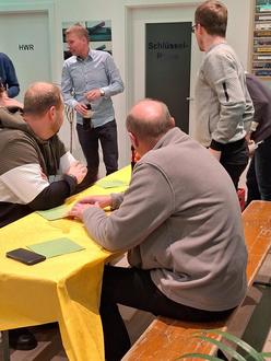 Hiernach wechselten die Firmenvertreter die Straßenseite und schauten hinter die Kulissen der Spedition Rodenberg. Achim Rodenberg und sein Sohn Christoph Rodenberg gaben einen Einblick in das 1994 mit nur einem LKW gegründet Unternehmen, dass sich vielfältig entwickelte und nun seinen beiden Söhnen fortgeführt wird.