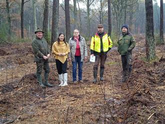 Frau Sommer hat zusammen mit Herrn Hausmann von der Forstbetriebsgemeinschaft Flotwedel, Frau Marwede und Herrn Schlange sowie den Mitarbeitenden der Firma Rahte eine dieser neu gepflanzten Flächen besichtigt.