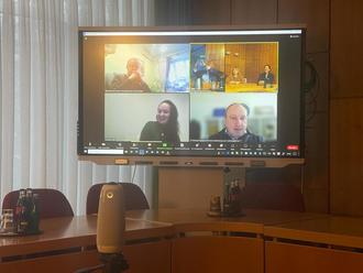Am Donnerstag, 15.02.2024, fand im Rathaus Wathlingen eine Onlinekonferenz mit Andrii Kulchynskyi, Bürgermeister der Stadt Truskavets und der Lehrerin Liliia Hrynash, die den Schüleraustausch begleitet hatte, statt.