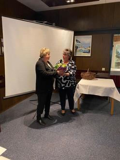 Danach wurde Klaudia Piliptschuk, die den Vorsitz abgab, von Dörthe Stellmacher, Vizepräsidentin Nord, mit der „Silbernen Biene mit Niedersachsenwappen“ für ihre langjährige Vorstandsarbeit geehrt. Beide „Geehrten“ nahmen ihre Bienen sehr gerührt an.