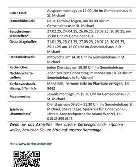 | 10.15 Uhr | St. Michael, Regionale Winterkirche mit Abendmahl (Saft), P. Ricker |