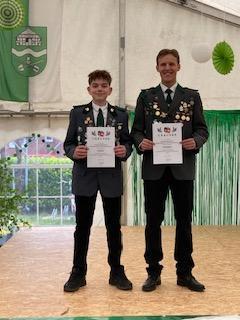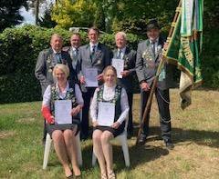 Bereits vor dem Schützenfest hatten die Kinder, Jugendlichen und Damen ihre neuen Majestäten ermittelt. Neue Kindermajestät wurde Levi Brandt, der sich auch den Titel Kindervogelkönig sicherte und den Lichtpunkt-Orden in Gold errang. Jugendkönig wurde Thore Laukart und Jugendvogelkönig wurde Ole Müller. Jugendkönigin wurde Amelie Kohl und Juniorenkönig Jonas Wernicke. Die Proklamation der neuen Kinder- und Jugendkönige fand jedoch traditionell erst beim Schützenfest am Samstag auf dem Festzelt statt. Nach der Proklamation der Kinder- und Jugendkönige konnten zwei junge Vereinsmitglieder für ihre 15-jährige Mitgliedschaft geehrt werden: Moritz Mende und Ole Müller. Nach den Ehrungen marschierten die Vereinsmitglieder mit musikalischer Begleitung des Spielmannszuges Wietze-Steinförde und dem Musikzug der Celler Knappen zum Ehrendenkmal, um einen Kranz niederzulegen und anschließend den noch amtierenden König Maximilian Fischer und seine Königin Nicole abzuholen. Nach einer Getränkepause beim König marschierte der Umzug zum Haus der neuen Kindermajestät Levi Brandt, um dort die Scheibe am Haus anzubringen. Auch der dort einsetzende Regen brachte der guten Stimmung keinen Abbruch, denn die spontane Idee des 1.Vorsitzenden, einen Shuttleservice zum Festzelt einzurichten, war der perfekte Plan. Alle Vereinsmitglieder und Spielleute kamen trocken zum Festzelt zurück.