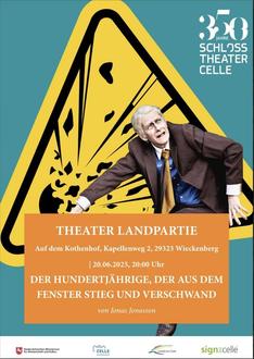 auch dieses Jahr wird wieder die Landpartie des Schlosstheaters am Freitag, den 20. Juni 2025, auf dem Kothenhof zu Gast sein und das Stück „Der Hundertjährige, der aus dem Fenster stieg und verschwand“ von Jonas Jonasson aufführen.