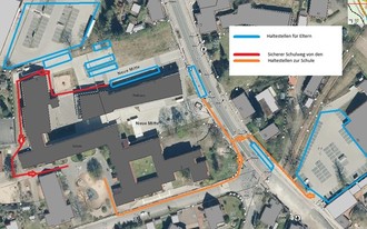Eine zentrale Maßnahme des Konzepts ist die Fokussierung auf den REWE-Parkplatz als Eltern- bzw. Familienhaltestelle. Zwar wurde dieser bereits in der Vergangenheit von einigen Eltern genutzt, doch wird er nun offiziell empfohlen, da er den kürzesten Weg zur Schule bietet und gleichzeitig am wenigsten Gefahrenpotenzial aufweist. Nach dem Kiss & Ride-Prinzip können Kinder dort sicher und stressfrei abgesetzt oder abgeholt werden. Weitere geeignete Haltemöglichkeiten befinden sich am Bürger- bzw. Rathaus sowie auf dem Netto-Parkplatz.