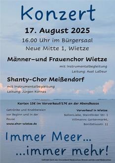 Sommer ist, wenn sich viele Menschen sich nach Entspannung und Erholung am Meer sehnen. Der Männer- und Frauenchor Wietze bietet in seinem Sommerkonzert die Gelegenheit, das Gefühl von Freiheit und Urlaubsstimmung direkt vor der Haustür zu erleben.