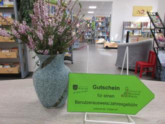 Der Bücherei-Gutschein beinhaltet eine einjährige Mitgliedschaft und ist für 10,- € in der Gemeindebücherei erhältlich.