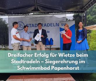 Am Samstag, den 17. August, feierte das Schwimmbad Papenhorst sein 60-jähriges Bestehen und bot den passenden Rahmen für die Siegerehrung des Stadtradelns im Landkreis Celle. Trotz regnerischem Wetter radelten zahlreiche Teilnehmerinnen und Teilnehmer zur Veranstaltung, um ihre Auszeichnungen entgegenzunehmen