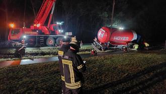 Nach knapp 10 Stunden konnte der Einsatz erfolgreich abgeschlossen werden, der havarierte LKW wurde durch ein Fachunternehmen geborgen und gesichert.