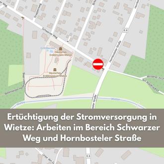 Die Maßnahme erstreckt sich zum einen von der Einmündung Schwarzer Weg / Hornbosteler Straße (K 4) in den Schwarzen Weg bis zum Erdölmuseum; hier ist mit Behinderungen zu rechnen. Zum anderen wird dann ebenfalls von der Einmündung Schwarzer Weg / im Gehweg an der K4 bis auf Höhe Kurfürstendamm ebenfalls eine neue Leitung verlegt.