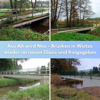 Die Sanierungsarbeiten an der Bohrmeister-Hasenbein-Brücke in Wietze sowie der Speckenbrücke in Wieckenberg sind erfolgreich abgeschlossen. Beide Brücken, die aufgrund notwendiger Reparaturen gesperrt werden mussten, stehen nun wieder zur Nutzung bereit.