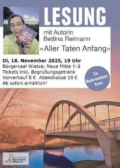 Aller Taten Anfang - so heißt der 4. und neuste Niedersachsen-Kriminalfall aus der Feder Bettina Reimanns. Ein toter Ghostwriter, ein unvollendetes Buch und ein altes Familiengeheimnis: Stoff, um die Ermittlerfamilie der Journalistin Flora Kamphusen erneut zu beschäftigen!