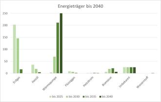 Basierend auf Gebäude- und Heizdaten der Wietzer Haushalte kann erwartet werden, dass fossile Brennstoffe, insbesondere Erdgas, aufgrund der gesetzlichen Vorgaben und den damit verbundenen Preissteigerungen bis 2040 schrittweise durch Wärmepumpen ersetzt werden. Eine minimale Versorgung ist durch Wasserstoff und Heizstrom zu erwarten, wobei der Anteil durch Biomasse erst zunehmen, aber durch den verbreiteten Einsatz von Wärmepumpen abnehmen wird.