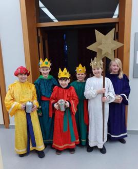 In diesem Jahr haben wir mit 6 Sternsingern die Schule besucht und unsere Geschichte vorgetragen.