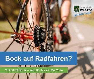Am 05. Mai 2024 geht’s los: Wietze startet gemeinsam mit dem Landkreis Celle beim STADTRADELN. Legen Sie 21 Tage möglichst viele Alltagswege mit dem Fahrrad zurück und schonen so Klima und Gesundheit. Melden Sie sich im offenen Team an oder gründen Sie Ihr eigenes mit Freunden, Kollegen oder Ihrem Sportverein.