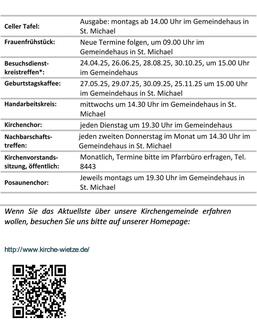 KiTa-Leitung kommissarisch: Mandy Meinecke, Kirchstr. 6, 29323 Wietze