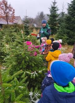Vor Ort durften die Kinder selbst entscheiden, welcher Baum es werden sollte. Allerdings war das gar nicht so einfach, denn es gab wirklich viele schöne Exemplare. Mit viel Geduld half Markus bei der Auswahl, bis schließlich „ihr“ perfekter Baum gefunden war.