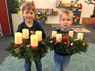 Mit viel Liebe und Engagement haben sie dafür gesorgt, dass unsere Gruppenräume in der Adventszeit in einem stimmungsvollen Licht erstrahlen. Die beiden Adventskränze begleiten die Kinder täglich durch die Vorweihnachtszeit und schenken ihnen Freude, Wärme und Besinnlichkeit.