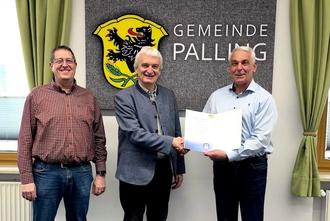Die Gemeinde Palling stellt sich dieser Verantwortung. Am 23. Februar 2026 überreichte Informationssicherheitsbeauftragter Andreas Gehret (rechts), der im nördlichen Landkreis Traunstein mehrere Kommunen in IT-Sicherheitsfragen betreut, dass „Siegel für kommunale IT-Sicherheit" des Bayerischen Landesamtes für Sicherheit in der Informationstechnik (LSI) in der aktuellen Version 4.0 an Ersten Bürgermeister Franz Ostermaier (Mitte). Unterstützt wurde er dabei von EDV-Verantwortlichem Helmut Heigermoser (links).