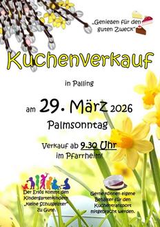 | So | 29.03. | 09:30 | Kuchenverkauf am Palmsonntag Pfarrheim Palling |