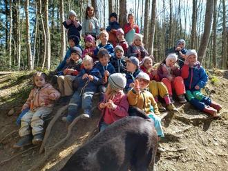 Am letzten Tag vor den Ferien schließlich machten sich die Kinder im Wald auf die Suche nach dem Osterhasen. Ganz enttäuscht kehrten sie nach erfolgloser Suche zurück zum Hauptplatz, nur um dort festzustellen, dass der listige Osterhase ihre Abwesenheit ausgenutzt hatte, um die Osternester zu füllen und zu verstecken. Da waren Freude und Aufregung natürlich groß und nachdem alle – teilweise sehr gut versteckten – Nestchen gefunden waren, wurden diese an die rechtmäßigen Besitzer verteilt und die Kinder konnten bestens gelaunt in die Osterferien starten.